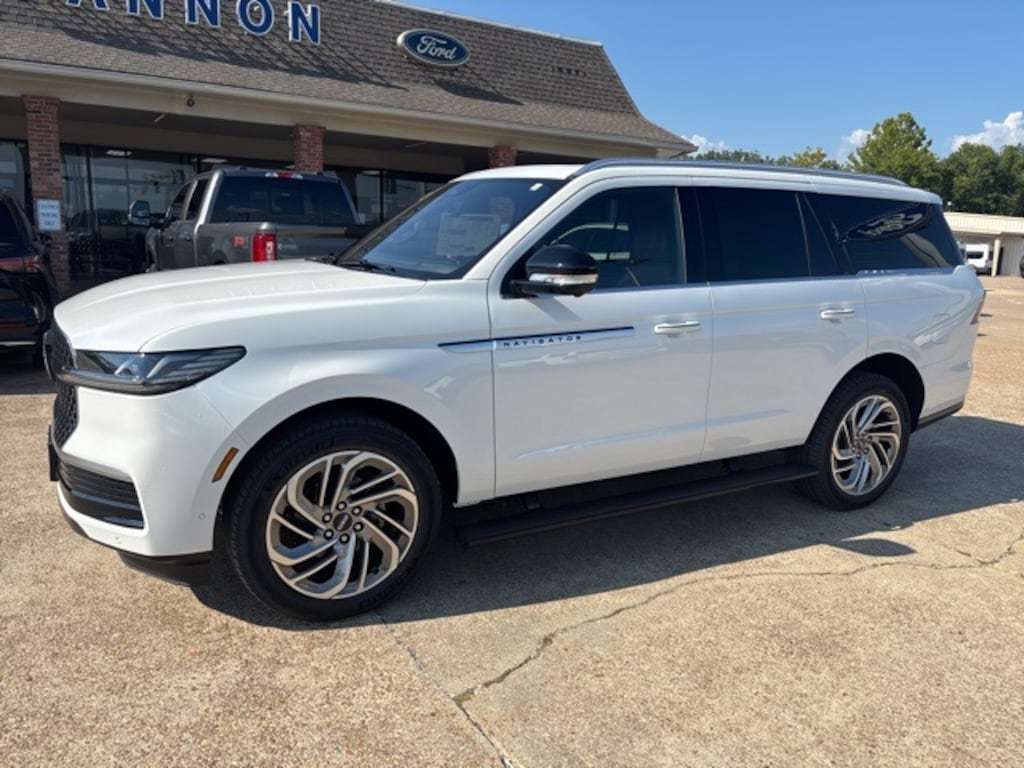 Pristine White Metallic Tri-Coat 2025 Lincoln Navigator Reserve 4WD 10-Speed Automatic 3.5L V6 4WD, Premium Hot Chocolate Leather.
